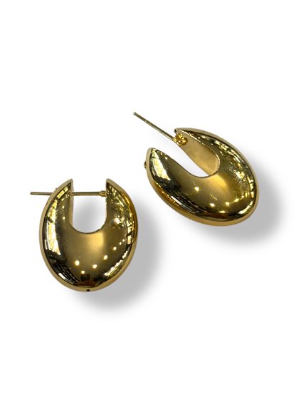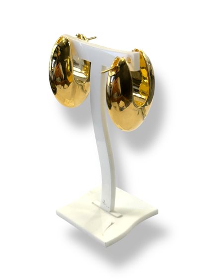 Orecchini cerchio scatolati, finitura lucida a specchio. cm 2,8x3,7; spessore cm 1,2 c.ca