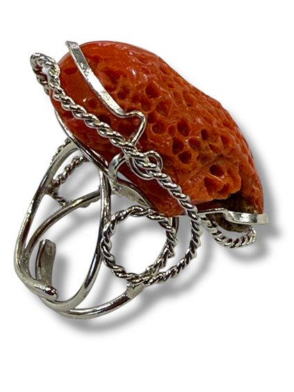 Anello in argento 925, lavorazione artigianale fatta a mano con incastonato un grosso crotalo rosso. Anello regolabile, misura 13 ~ 20. Piccole imperfezioni che possono essere visibili non devono essere considerate difetto ma peculiarità delle pietre naturali e della lavorazione artigianale.