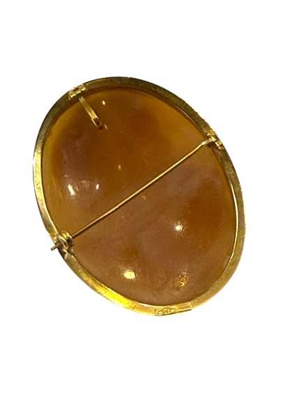 Spilla / Ciondolo in oro 18 Kt 750 /00 montatura classica, battuta, cammeo antico su conchiglia sardonica con incisione “Profilo di donna ” interamente fatta a mano, dimensione cammeo 40 mm. Piccole eventuali imperfezioni dovute alla realizzazione a mano non sono considerate difetto ma una peculiarità dell’hand made. Il peso indicato è riferito alla montatura di oro ed è approssimativo.